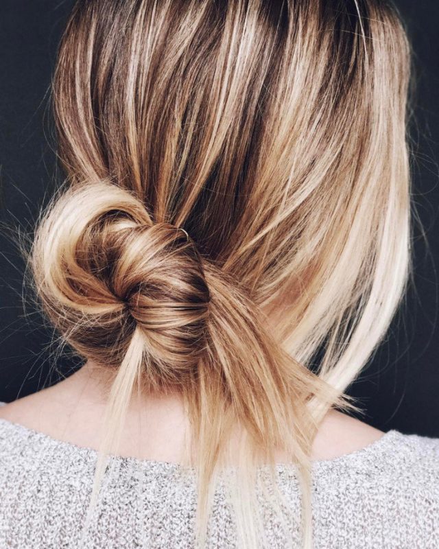 Это, пожалуй, самая сексуальная укладка. Пучок стоит делать на затылке, не стягивая сильно волосы — дай им свободу, легкая небрежность еще никому не мешала! Запомни: лак при такой укладке использовать не стоит!