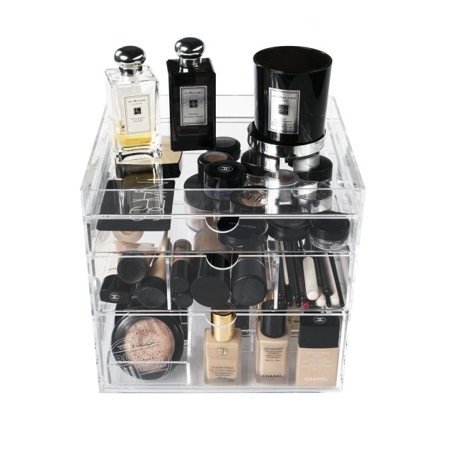 Если у тебя много мелкой косметики (типа теней для век, кисточек, блесков для губ, туши и разных карандашей), то пригодятся корзинки, стаканы, банки или подносы, на которые ты можешь красиво разложить свое бьюти-добро. На AliExpress такие можно купить за 5 $ (ок. 300 р.).